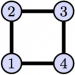%%%%% % DEPENDENCIES % RequiredPackages \usepackage{tikz} % RequiredMacros: \DeclareMathOperator{\aut}{Aut} %%%%% \begin{problem} Consider the graph $\mathcal{G} = (V,E)$ drawn below. The vertex set is $V$ and the (symmetric) relation giving adjacency is $E$. Specifically, $V = \{1,2,3,4\}$ and \[E = \{(1,2),(2,1),(2,3),(3,2),(3,4),(4,3),(1,4),(4,1)\}.\] Write down all elements of $\aut(\mathcal{G})$; view these as the elements of $S_4$ that preserve $E$. Also, determine if the following statements are true or false; explain your answers. For $a,b\in \aut(\mathcal{G})$, $ab$ denotes the (function) composition of $a$ with $b$, and $a^n$ denotes the composition of $a$ with itself $n$-times. \begin{enumerate} \item There is an $a\in \aut(\mathcal{G})$ such that $a^2$ is the identity but $a$ is not the identity. \item There is an $a\in \aut(\mathcal{G})$ such that $a^3$ is the identity but $a$ is not the identity. \item There is an $a\in \aut(\mathcal{G})$ such that every other $b\in \aut(\mathcal{G})$ is of the form $b=a^n$ for some $n$. \item For every $a,b\in \aut(\mathcal{G})$, $ab = ba$. \end{enumerate} \begin{center} \begin{tikzpicture}[vertex/.style={circle,draw=black,fill=blue!15,thick,inner sep=1.5pt}, line width = 2] \draw (0,0) node[vertex] {\footnotesize$1$} -- (0,1) node[vertex] {\footnotesize$2$} -- (1,1) node[vertex] {\footnotesize$3$} -- (1,0) node[vertex] {\footnotesize$4$} -- cycle; \end{tikzpicture} \end{center} \end{problem}